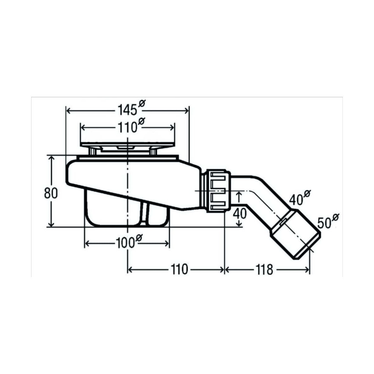 Vysokokvalitný sprchový žľab ø 90 mm s výškou 8 cm. Má odtokový výkon 38,4 l/min a výšku odtoku 15 mm. Sifón spĺňa požiadavky normy EN 274.