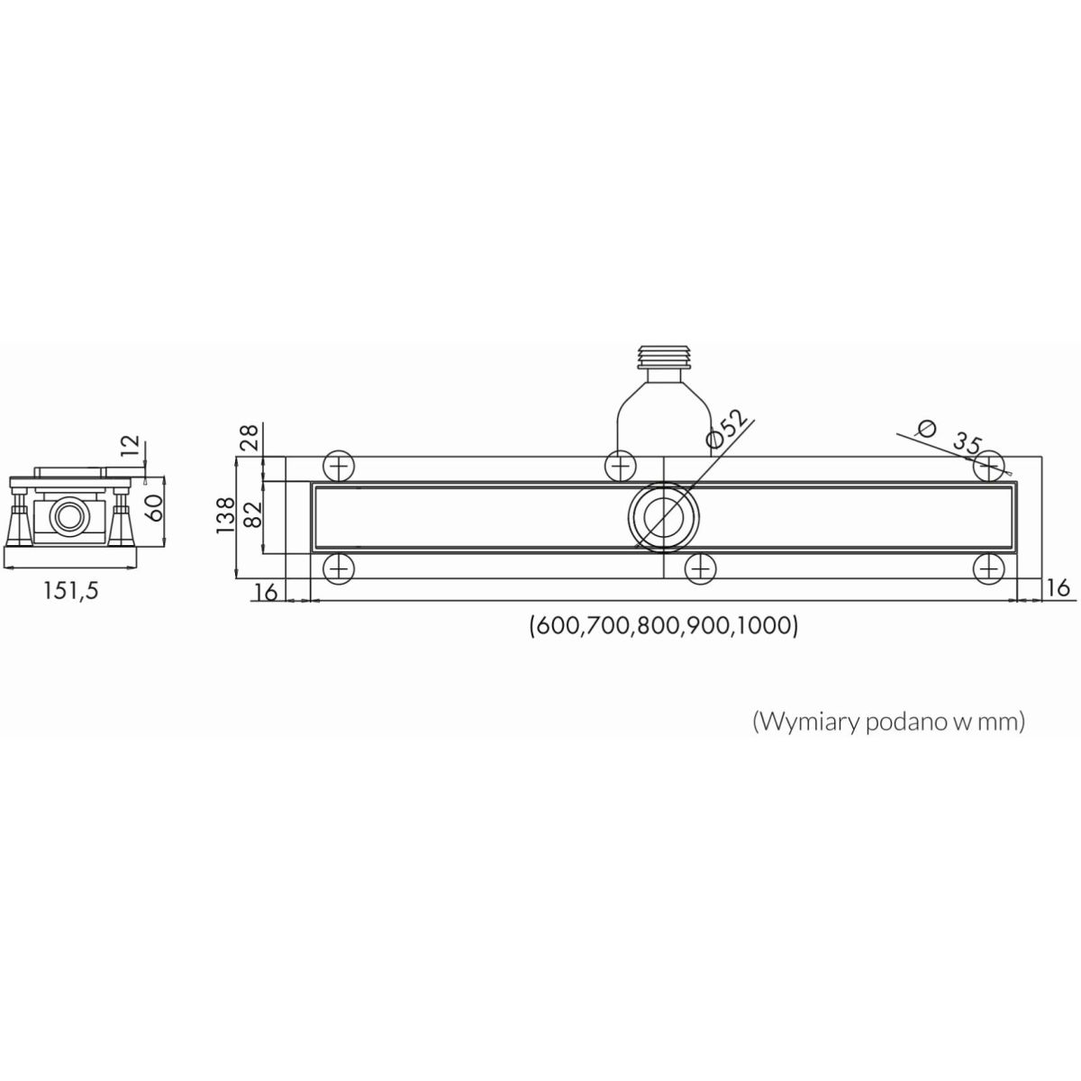 Schedpol Base-Low sprchový odtok 60 cm OLSP60/ST-LOW