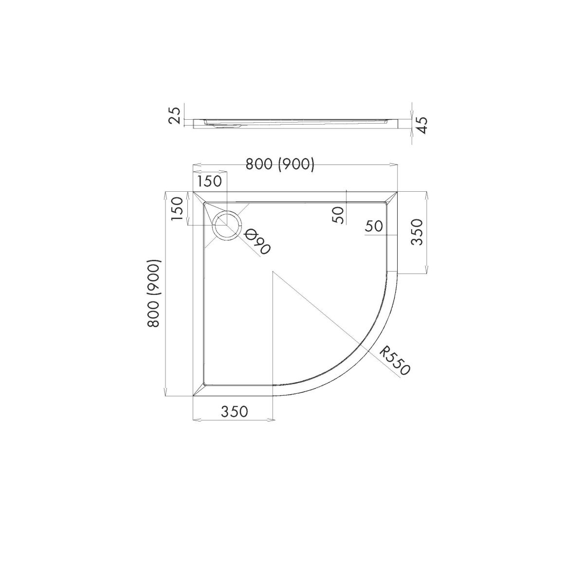 Schedpol Caspar New Black Stone polkruhová sprchová vanička 90x90 cm čierna 3.2334/C/ST
