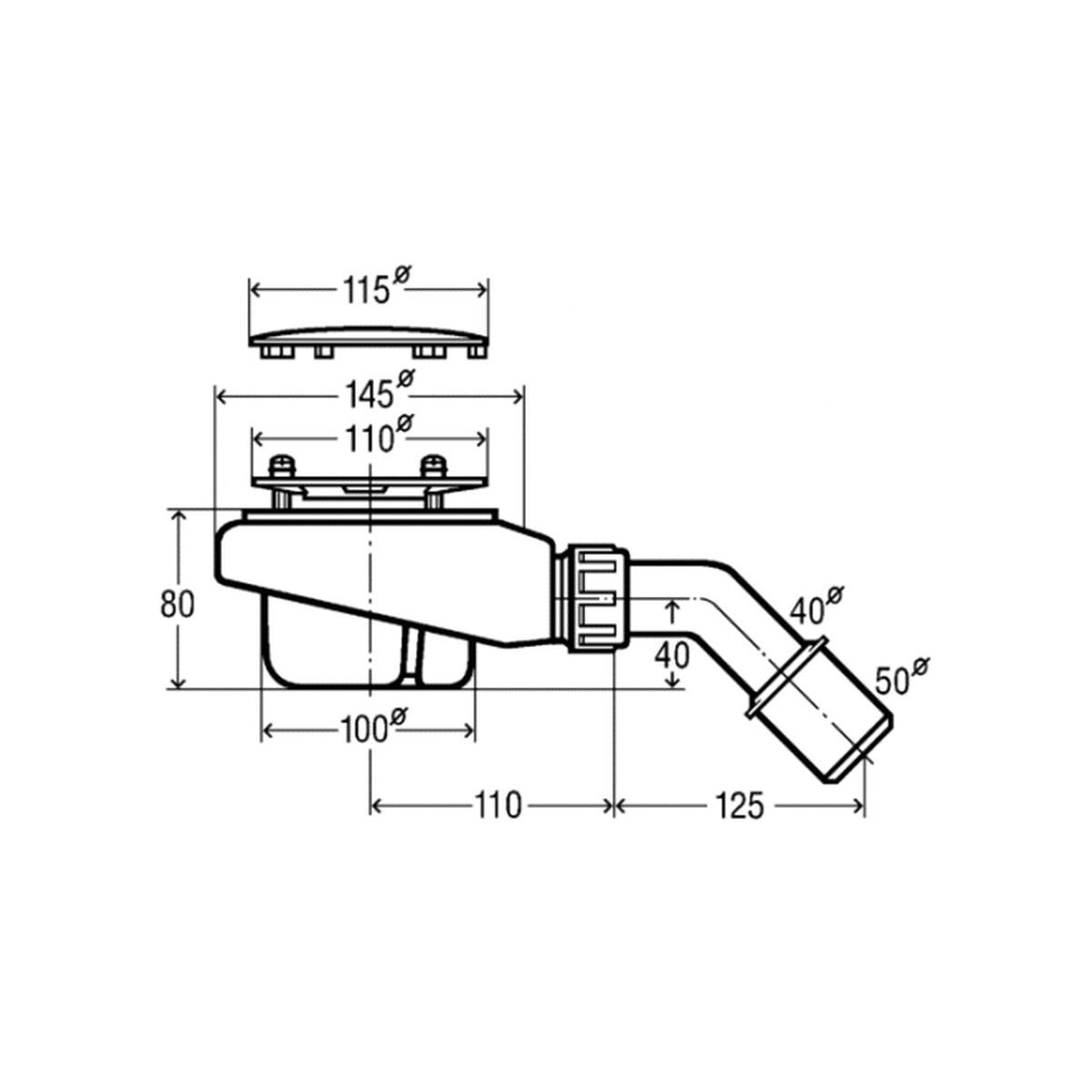 - sada obsahuje vysoko kvalitný sifón čistiteľný zhora (⌀90 mm, prietok 43,8 l/min, výška 8 cm)