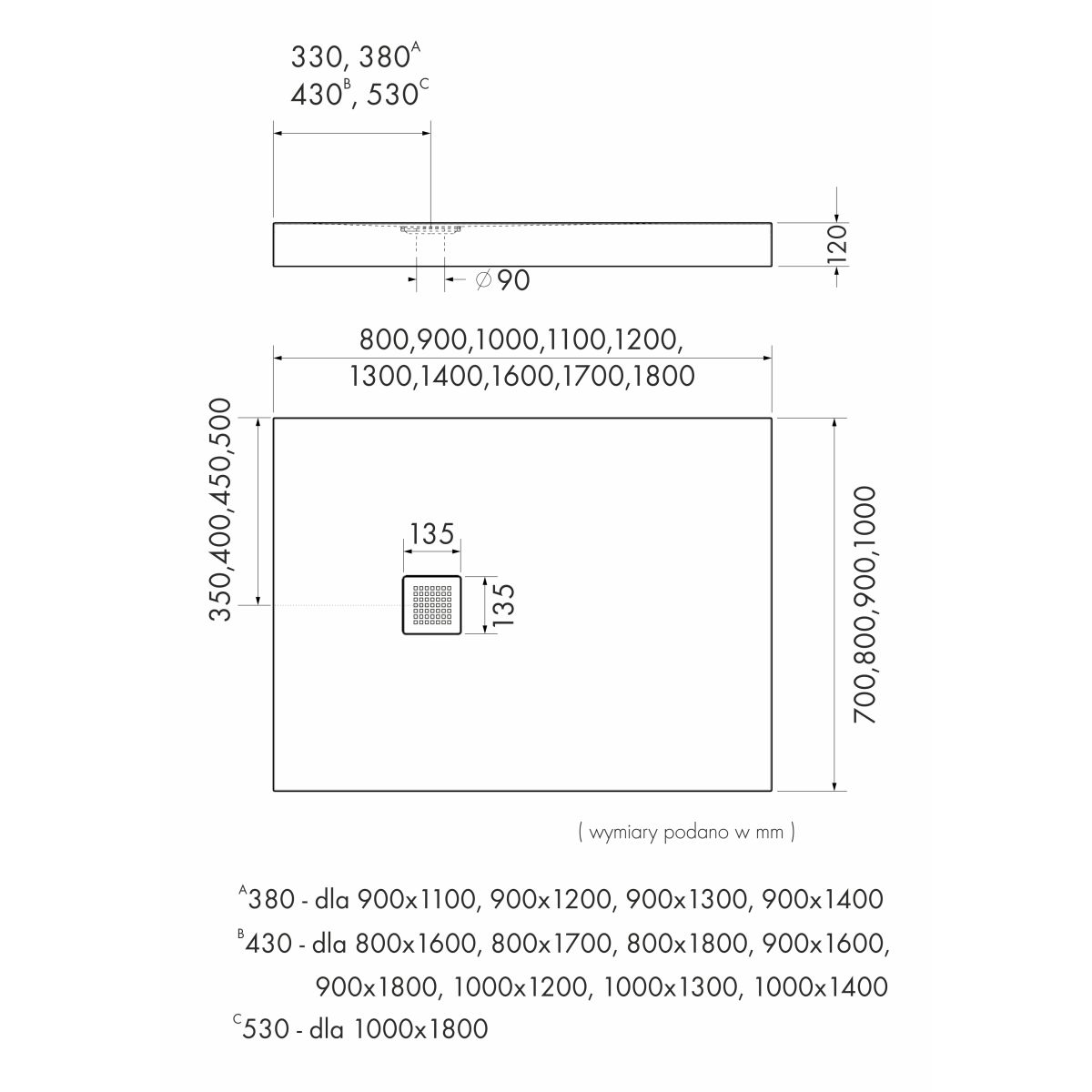 - priemer odtoku: Ø 90 mm