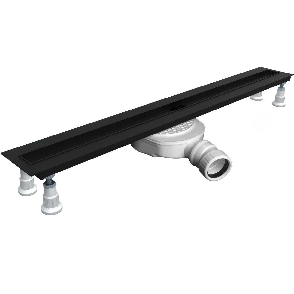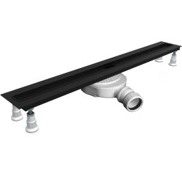 Bezprírubový odtok. Výrobok spája minimalistický dizajn s funkčnosťou - čierna základná verzia sa hodí do mnohých interiérov, zatiaľ čo prídavné farebné mriežky umožňujú prispôsobiť vzhľad interiéru. Tento hliníkový odtok je trvanlivý, odolný voči korózii a vďaka nastaviteľným nožičkám sa ľahko umiestňuje. Odporúča sa pre obytné a verejné zariadenia.