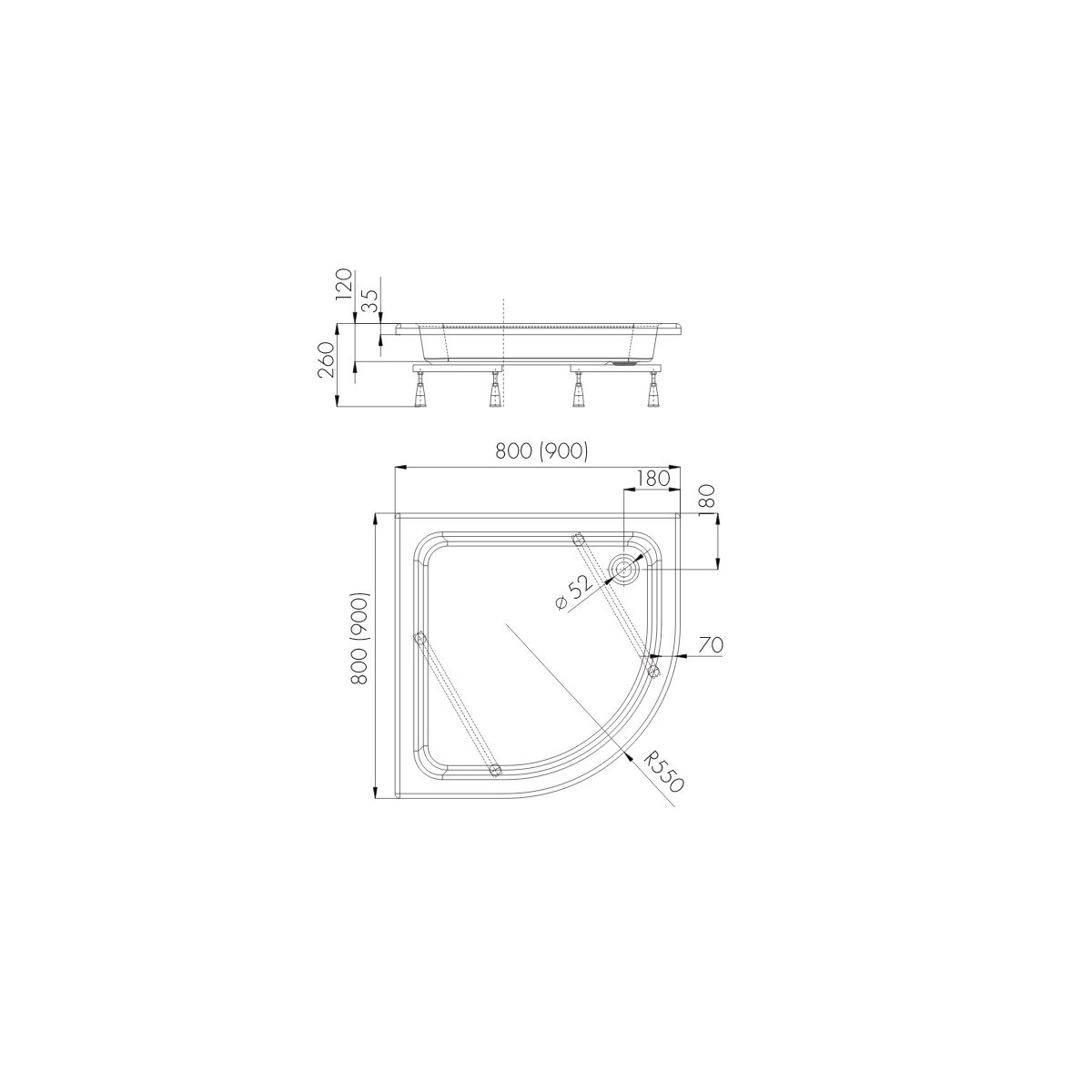 Schedpol Zefir polkruhová sprchová vanička 80x80 cm biela 3.215
