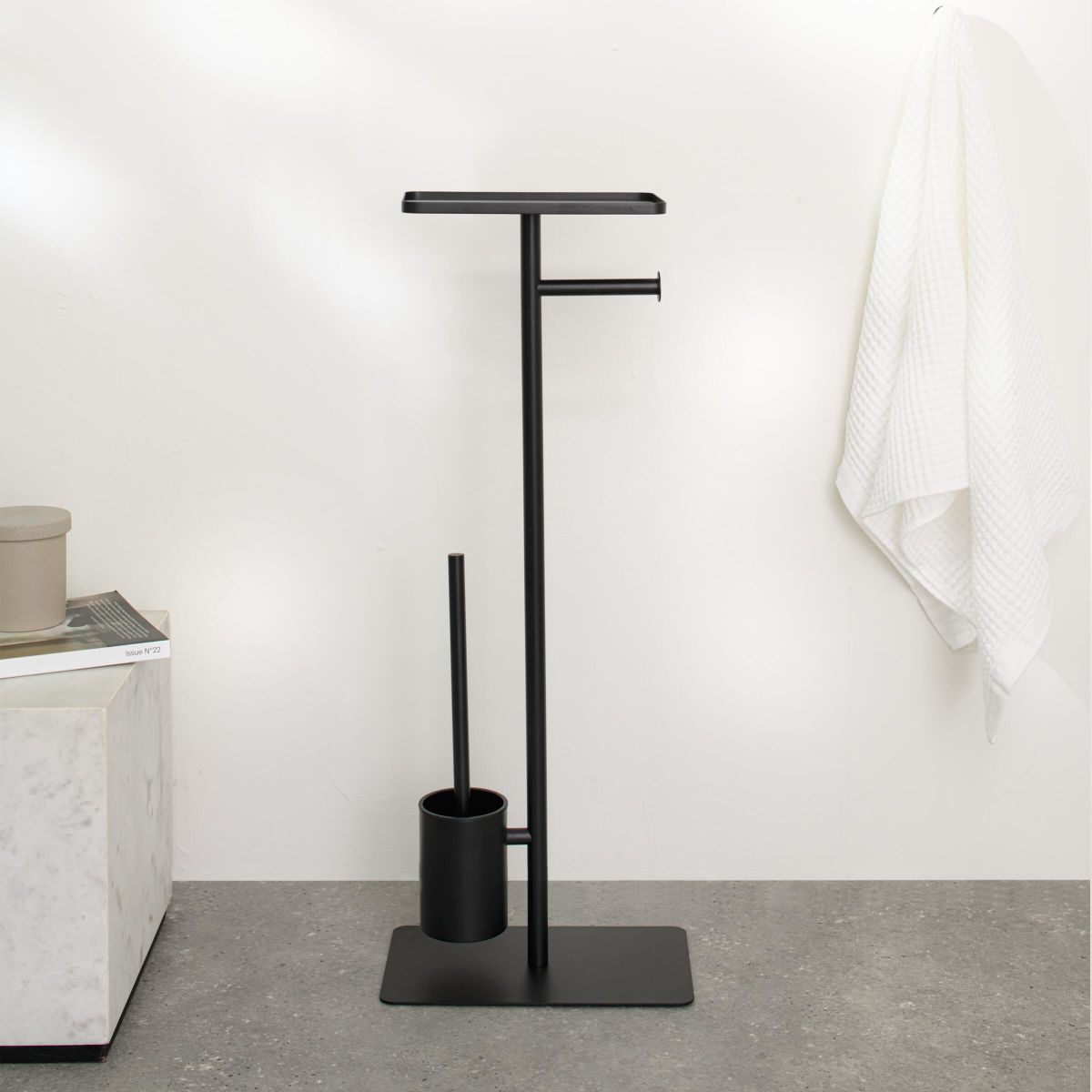 Vďaka kompaktnému dizajnu je stojan ideálny do malých miestností, kde ponúka dvojitú funkčnosť bez toho, aby zaberal ďalší priestor. Čierne akcenty dodávajú interiéru výrazný industriálny charakter a polička je ideálna na odloženie telefónu alebo vlhčených utierok. Produkt sa ľahko montuje – súprava obsahuje potrebný montážny materiál a návod. Sériu Brix možno kombinovať s ďalším príslušenstvom a vytvoriť tak ucelený a štýlový celok. Na produkt sa vzťahuje 2-ročná záruka, ktorá zaručuje bezpečnosť a spokojnosť s nákupom.