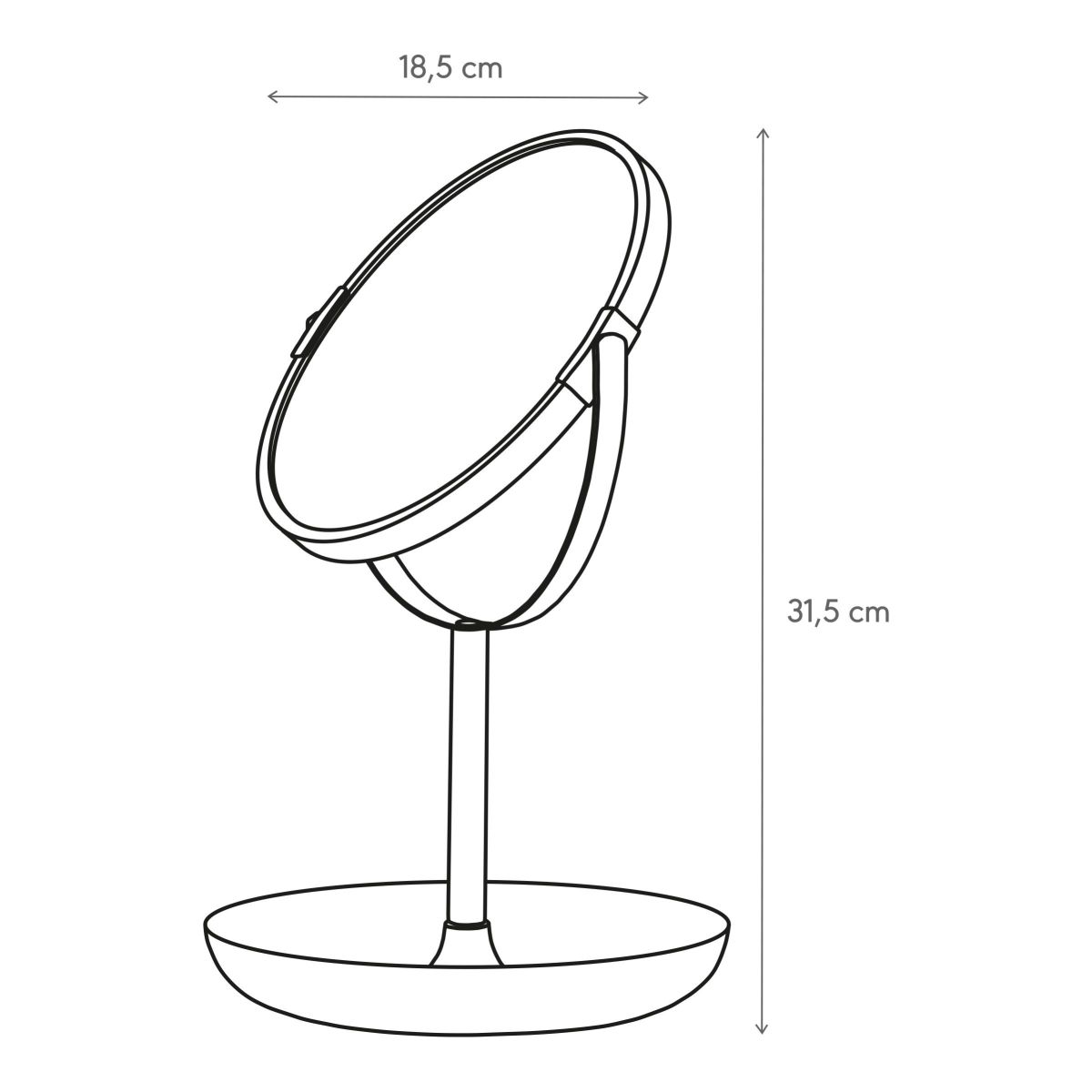 Kozmetické zrkadlo Brix 2 v 1 – štýlové zrkadlo s odkladacou priehradkou a 5-násobným zväčšením