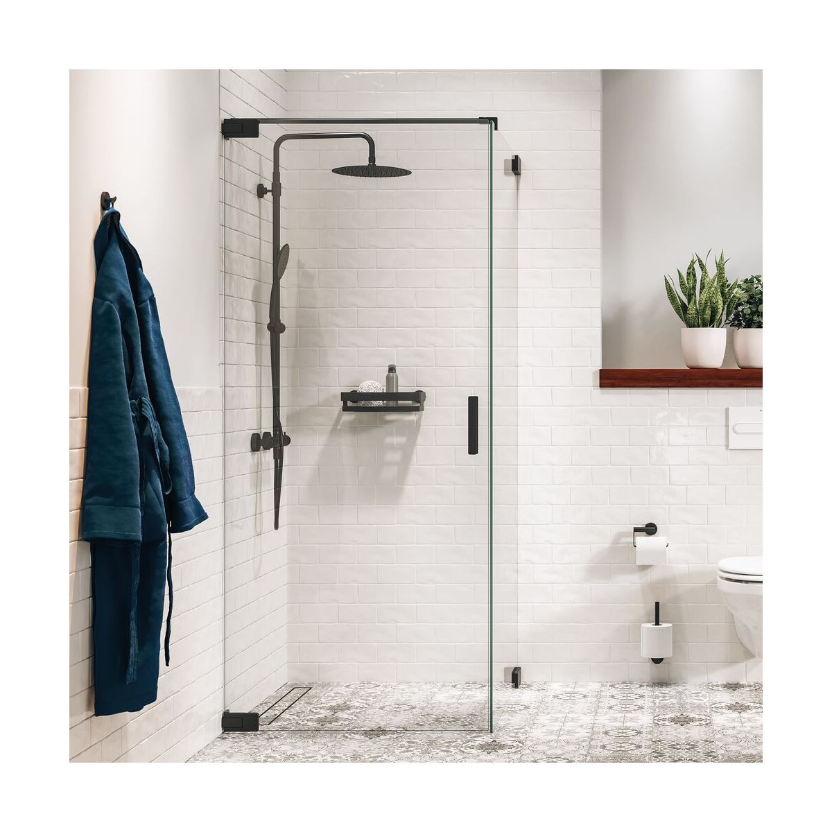 Zažite jedinečnú kombináciu štýlu a funkčnosti s našimi krídlovými dverami a bočnou stenou z rovnakého radu. Sprchový kút je široký 88 cm, takže sa zmestí do väčšiny sprchových vaničiek so šírkou 90 cm alebo ho možno umiestniť priamo na dlážku. Vysokokvalitné upevňovacie prvky z nehrdzavejúcej ocele zabezpečujú rovné spojenie s 8 mm hrubým bezpečnostným sklom s povrchovou úpravou proti usadzovaniu vodného kameňa. Vďaka tomu zostáva sklo čisté a po kúpaní sa ľahko osuší. Kto by to nechcel? Krídlové dvere sa dajú otvárať dovnútra alebo von a sú vybavené automatickým zatváracím systémom na jednoduché zatváranie. Závesy a rukoväť sú vyhotovené v matnej čiernej farbe. Odvážna povrchová úprava, ktorá sa dobre kombinuje s mnohými kúpeľňovými štýlmi.
