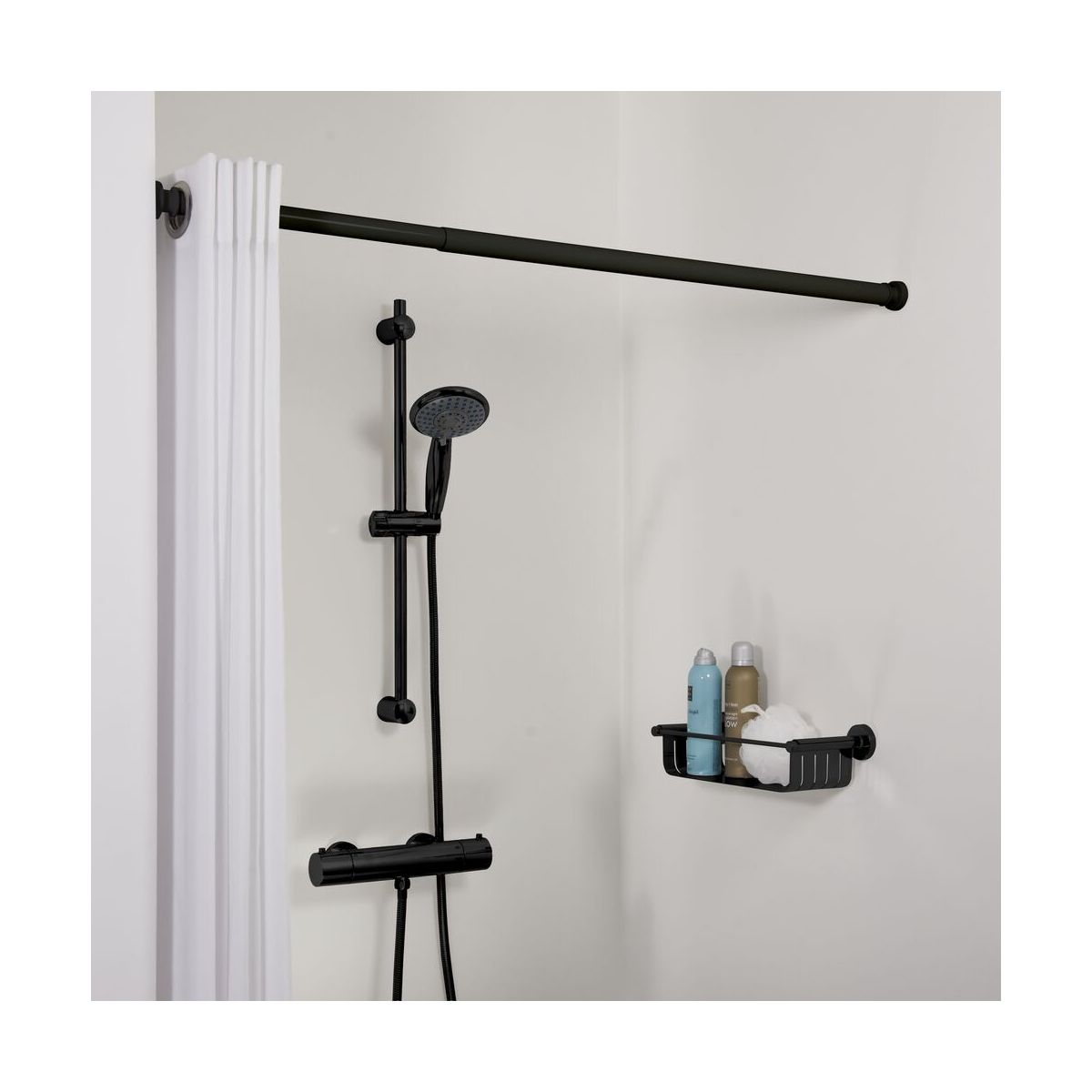 Vŕtanie nie je pre vás? Túto rozťahovaciu tyč na sprchové závesy Sealskin možno rýchlo a jednoducho upevniť medzi steny sprchy. Vďaka svojej nastaviteľnosti sa zmestí do priestorov od 80 cm do maximálne 130 cm. Tyč má navyše priemer 28 mm, a preto je vhodná prakticky pre všetky typy koliesok na sprchové závesy. Tyč Seallux je robustne upevnená, vyrobená z hliníka a dostupná v čiernej farbe.
