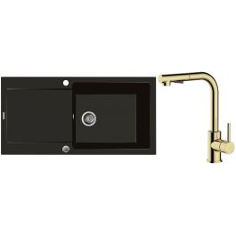 1. Jednomiestny granitový drez Oltens Gravan s odkvapkávacou miskou, 100 x 50 cm, matná čierna, 72101300