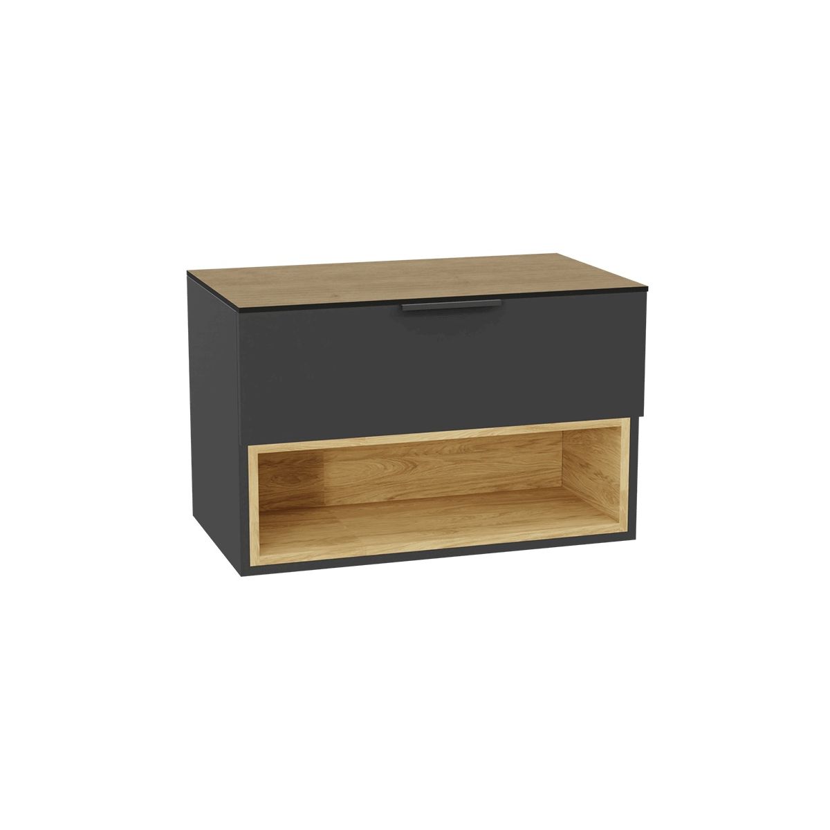 Moderná umývadlová skrinka Tuto 2.0 s jednou priestrannou zásuvkou a praktickým otvoreným úložným priestorom. Čelá sú dodávané spolu s úchytkami. Všetky čelá sú vo farbe zhodnej s korpusom skrinky. Skrinka dokonale spája funkčnosť s moderným dizajnom. Rôzne konfigurácie umožňujú, aby sa tento kus nábytku prispôsobil individuálnemu štýlu a potrebám každej kúpeľne. Čelá zásuviek sa dodávajú vrátane úchytiek. Skrinka a zásuvka sa dodávajú kompletne zmontované. Čelá a horná časť/umývadlo sa montujú samostatne.