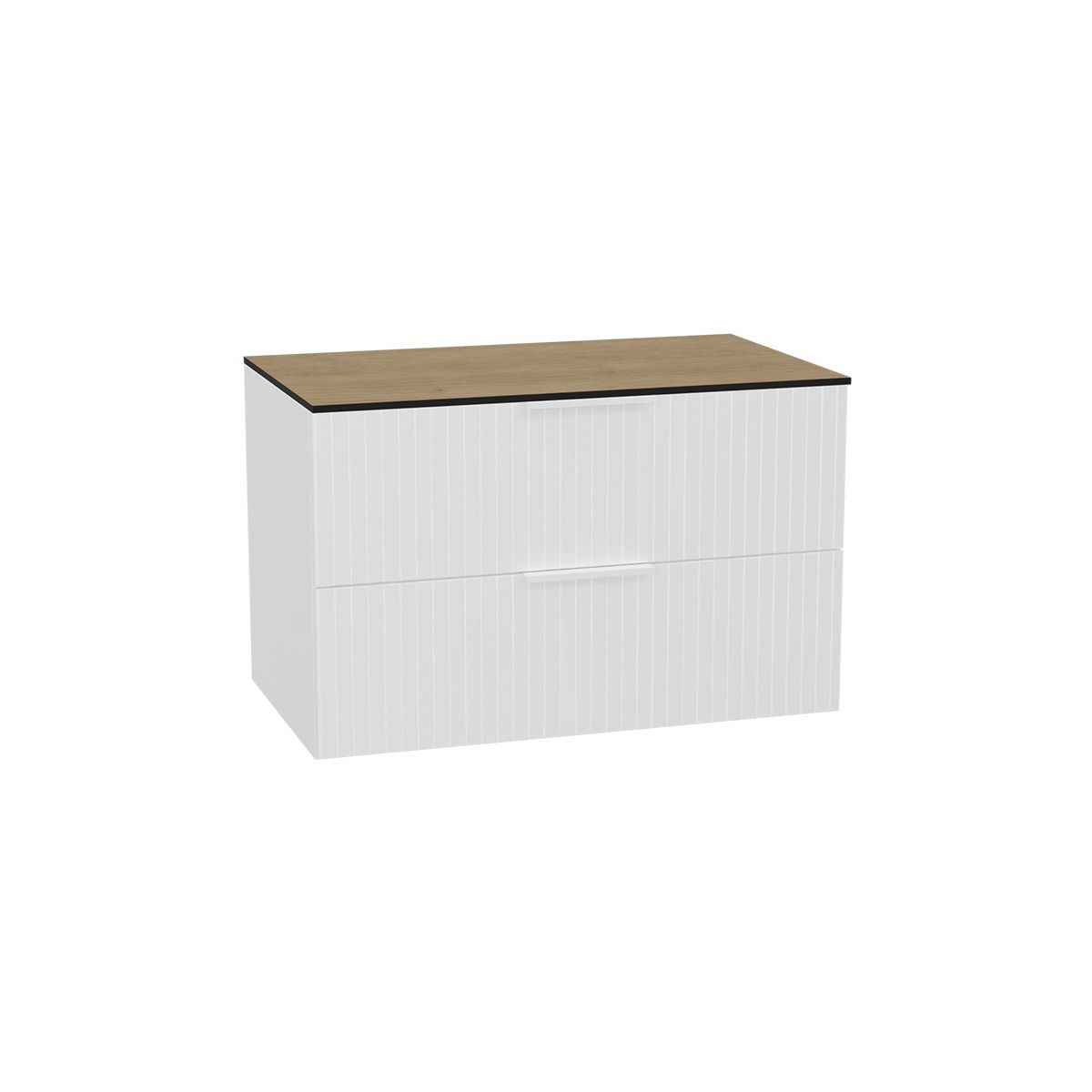 Korpus skrinky Tuto 2.0 80 cm, 2 zásuvky bez čela, bez hornej dosky, biely lesk/dub.