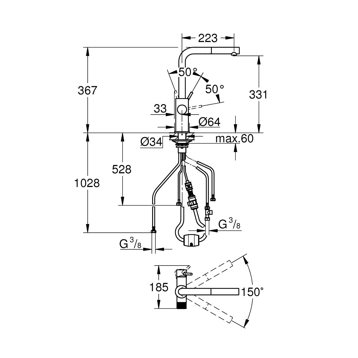 Stojaca kuchynska batéria Grohe Blue Pure Minta, čierna 30590KF0