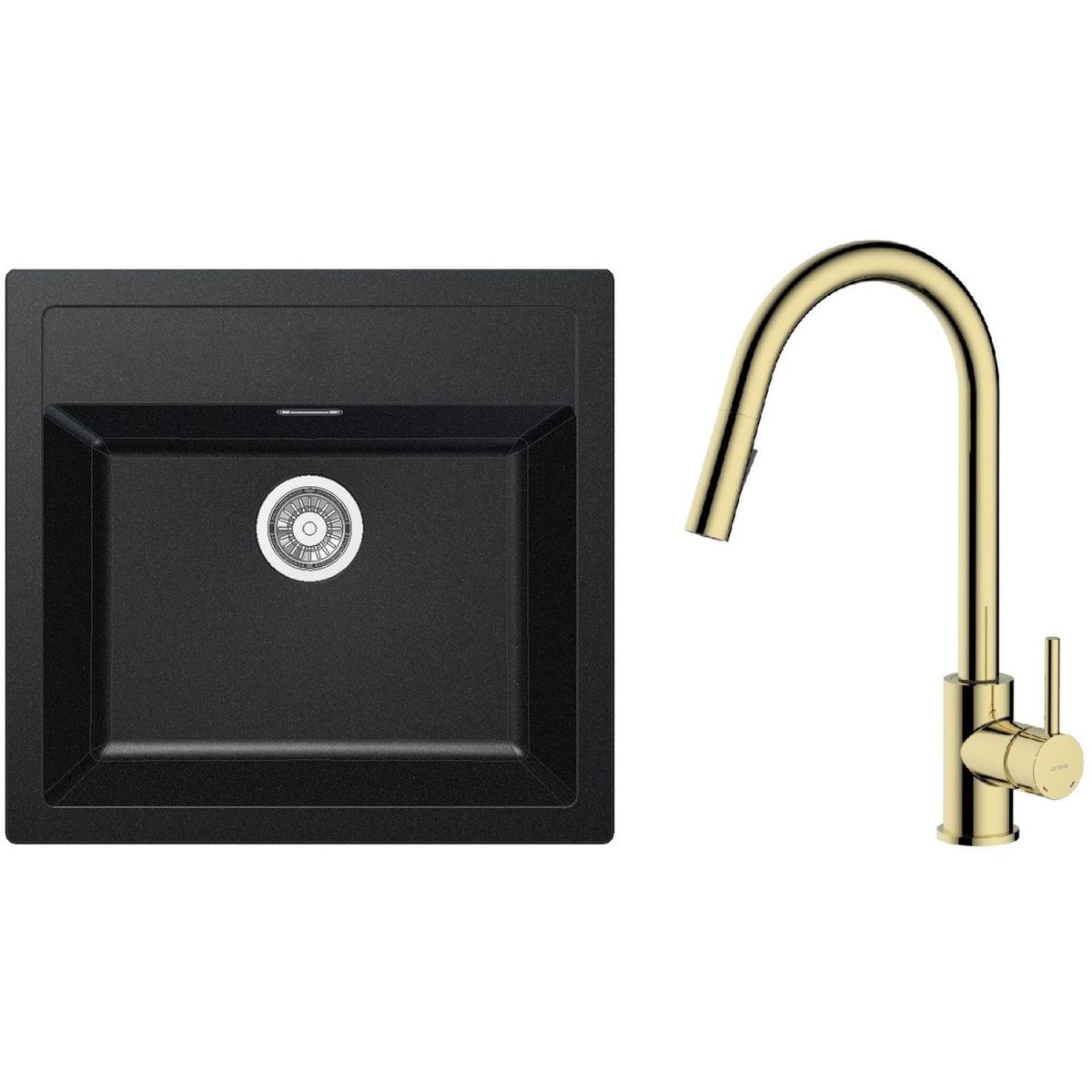 2. Oltens Litla stojánková kuchynská batéria s výsuvným rozprašovačom Zlatý lesk (35204800)