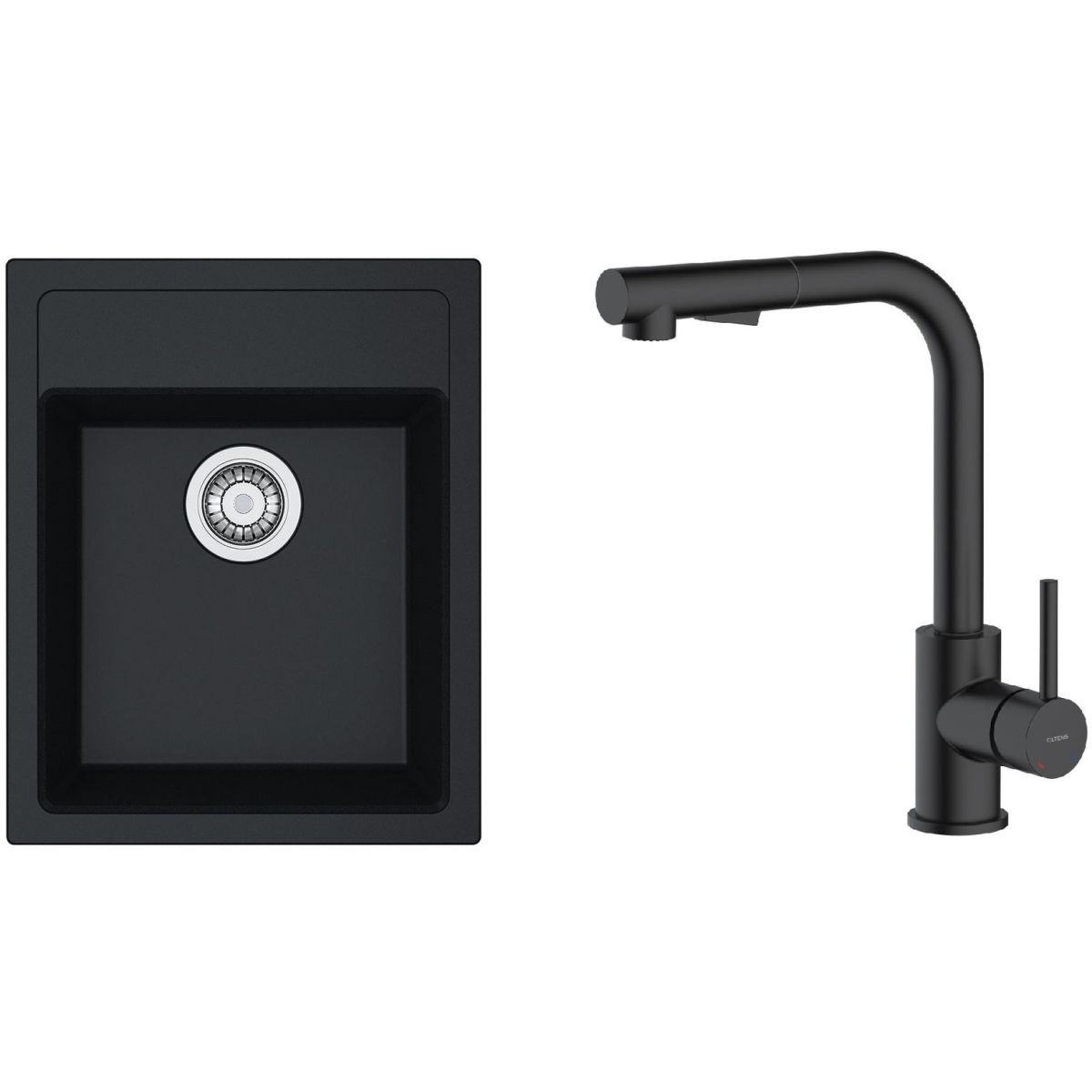2. Oltens Myvat stojaca kuchynská batéria s vyťahovacou hubicou čierna matná (35205300)