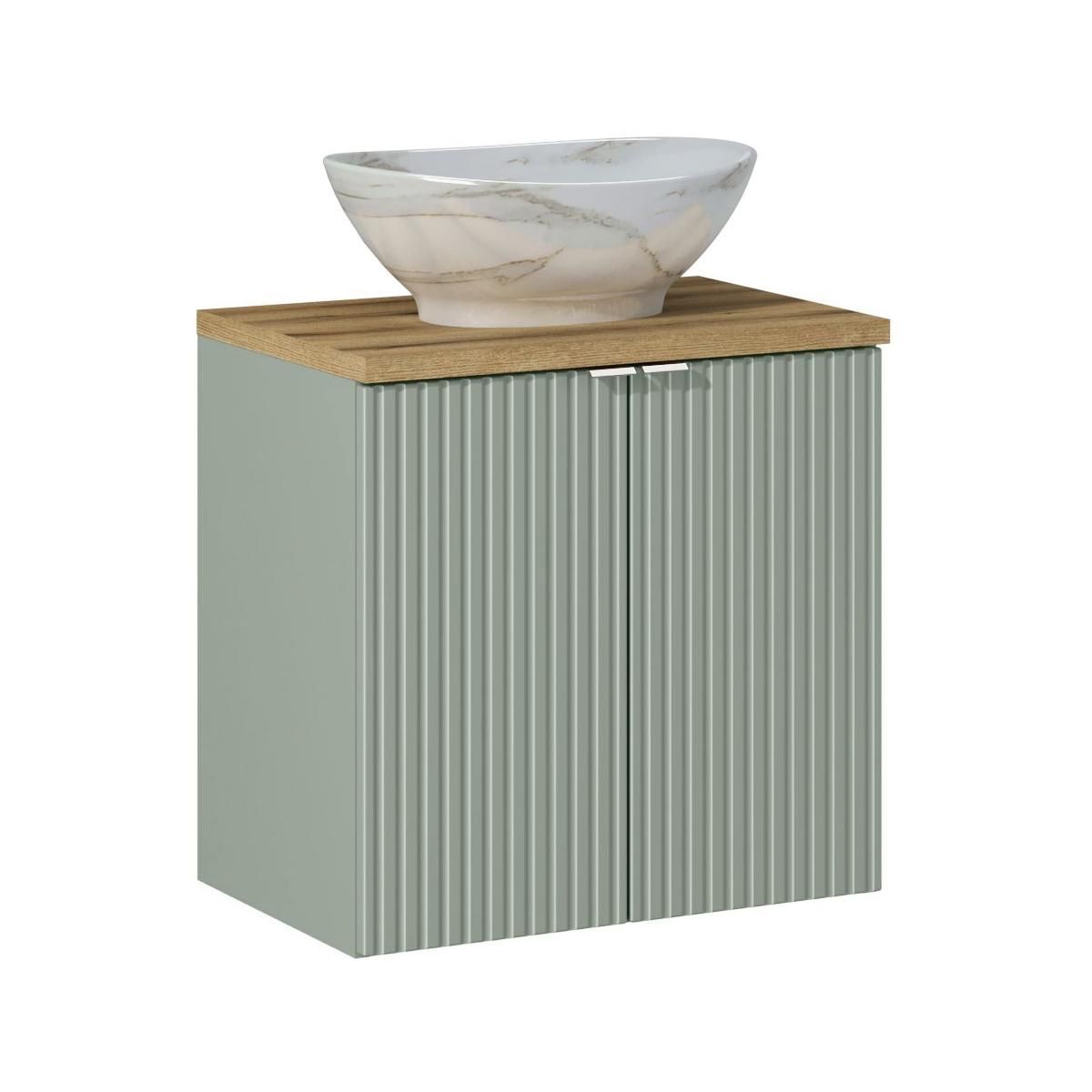 Súprava sa skladá zo skrinky pod umývadlo LINE REED GREEN D 82-60-2D, dosky NOVA OAK A 89-60 a umývadla na dosku UN-PATI-MW3. Vďaka šírke 60 cm a hĺbke 40 cm je táto súprava ideálna do menších kúpeľní, kde sa počíta každý centimeter.
