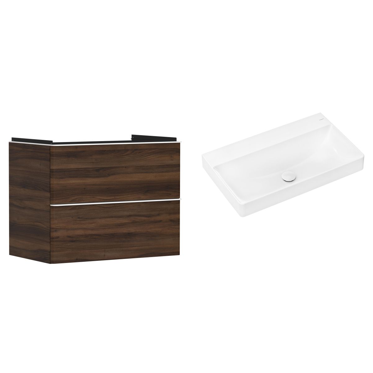 1. Hansgrohe Xelu Q 78 cm nástenná umývadlová skrinka, tmavý orech/matná biela 54030700