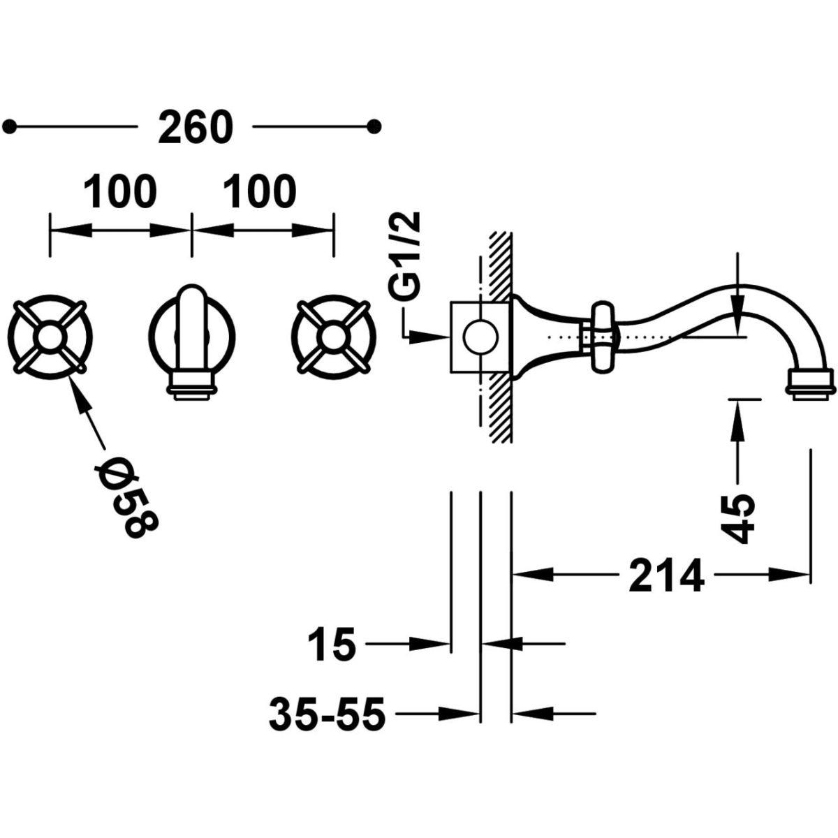 Tres Clasic-Tres umývadlová batéria podomietková mosadzná/antický bronz 24215101LV