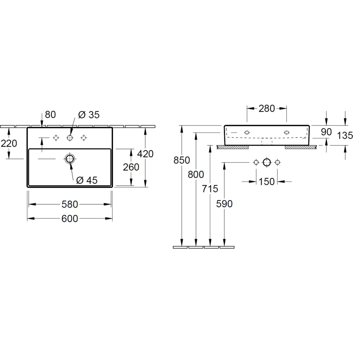Villeroy & Boch Memento 2.0 umývadlo 60x42 cm obdĺžnik klasické umývadlo-umývadlo na nábytok biela 4A226L01