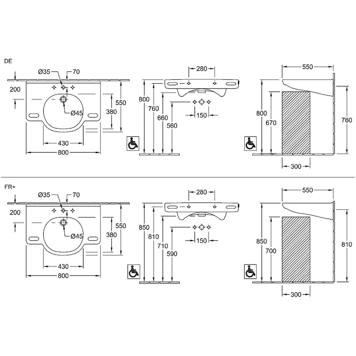 Villeroy & Boch O.Novo Vita umývadlo 80x55 cm klasické umývadlo pre zdravotne postihnutých biela 41208001