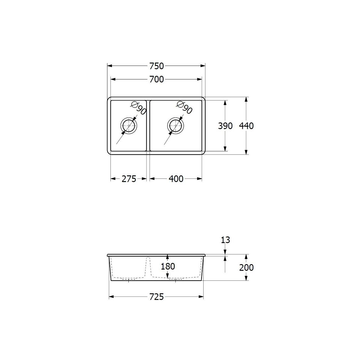 Villeroy & Boch Subway keramický drez 75x44 cm čierna 338801R7