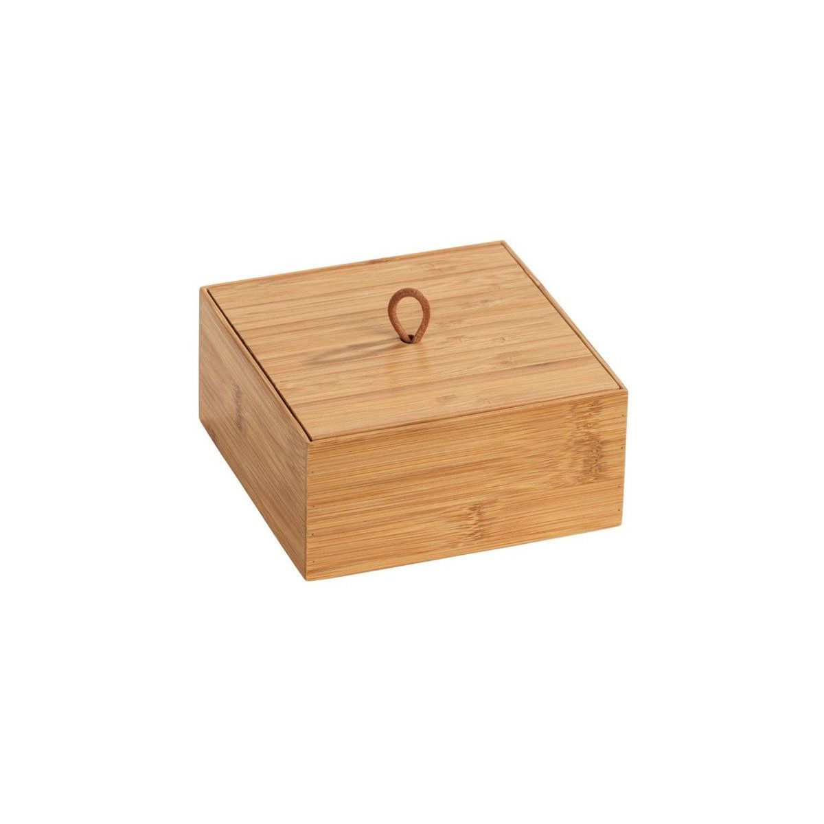 Bambusová nádoba s vekom vám umožní zhromažďovať drobné kúpeľňové doplnky na jednom mieste.